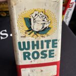 Featuring classic White Rose branding and period graphics, this can stands out with its utilitarian design and agricultural focus. Its larger one-gallon size gives it strong display presence, while its niche use makes it especially appealing to collectors of farm memorabilia, veterinary antiques, and petroliana.